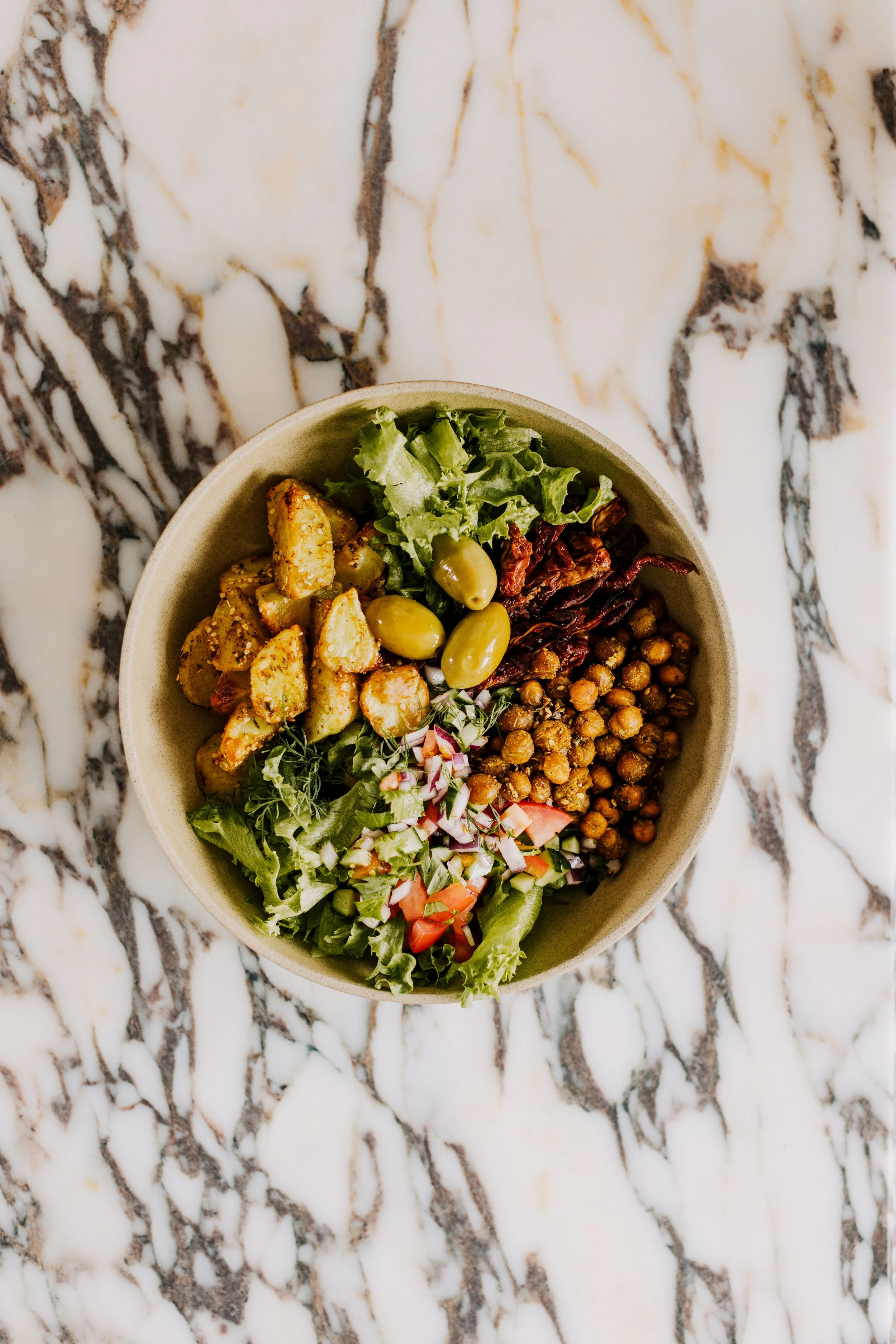GRILLAÐ SESARSALAT MEÐ HARISSA KJÚKLINGABAUNAKURLI