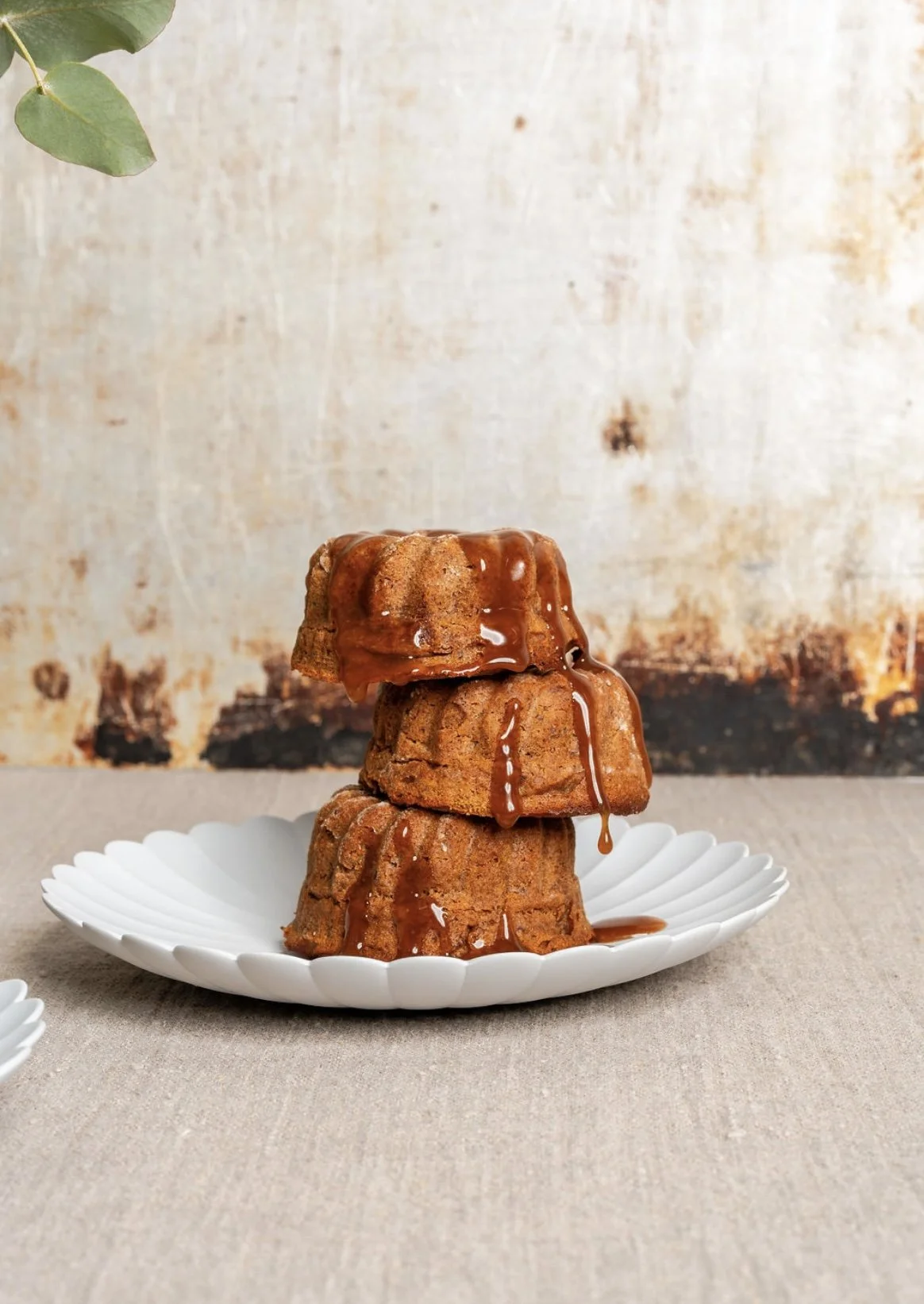 Þessar litlu döðlukökur eru dúnmjúkar og sætar með döðlum. Eggjalaus bakstur getur verið kúnst en mér hefur fundist langbest að nota ‘‘flax egg’’ úr muldum hörfræjum. Kökurnar eru fullkomnar við svo mörg tilefni og ekki skemmir hvað það tekur stuttan tíma að baka þær. Toppið með heitri karamellusósu og njótið í botn.